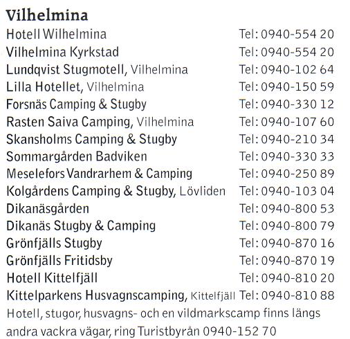 Ring Vilhelmina flygplats för dagsaktuella priser